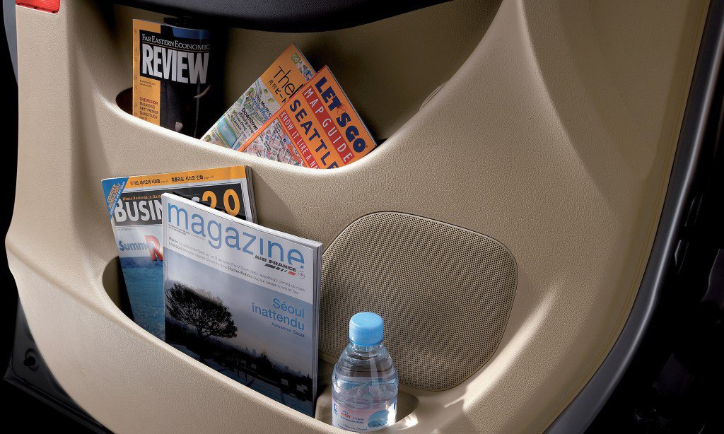 Espaço para arrumações integrados nas portas conseguem armazenar revistas, mapas e papéis de modo a tornar a sua viagem mais agradável.