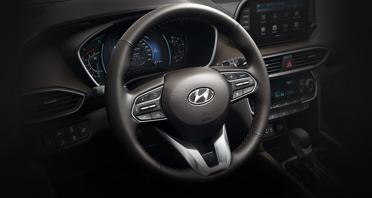 Mau tempo? Curvas apertadas? Não há problema. O Novo Santa Fe está disponível com o inovador sistema de tração integral HTRAC™, para uma manobrabilidade otimizada e o melhor desempenho nas curvas, garantindo que a condução é muito mais segura e descontraída em ruas urbanas escorregadias e estradas rurais acidentadas.