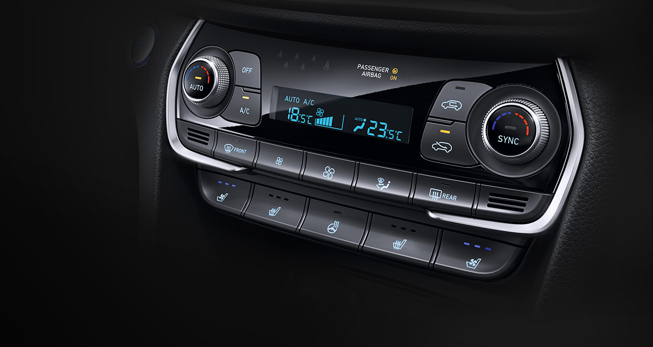 Com a seleção do modo de condução, é possível alterar a dinâmica de condução do Novo Santa Fe de acordo com a sua disposição. No modo ECO, o HTRAC possibilita uma melhor eficiência de combustível ao distribuir a potência apenas pelas rodas dianteiras. Em pisos escorregadios, o sistema distribui automaticamente a potência pelas quatro rodas. O binário do motor, a mudança de velocidades e a distribuição do binário do HTRAC mudam consoante os modos de condução e são apresentados no painel de instrumentos.