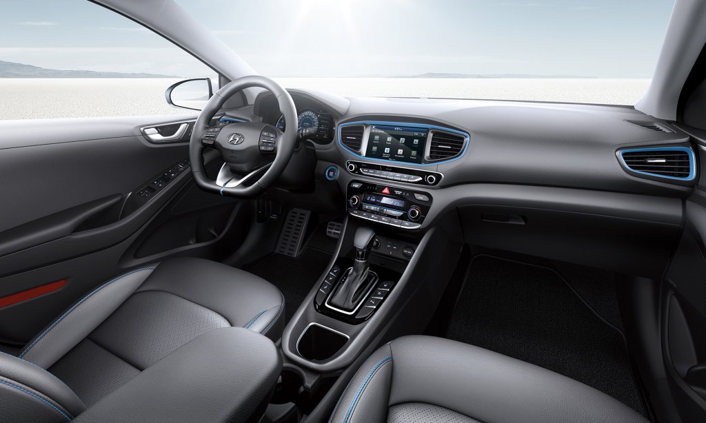 A cabine do IONIQ Híbrido é embelezada através de elementos de decoração em azul