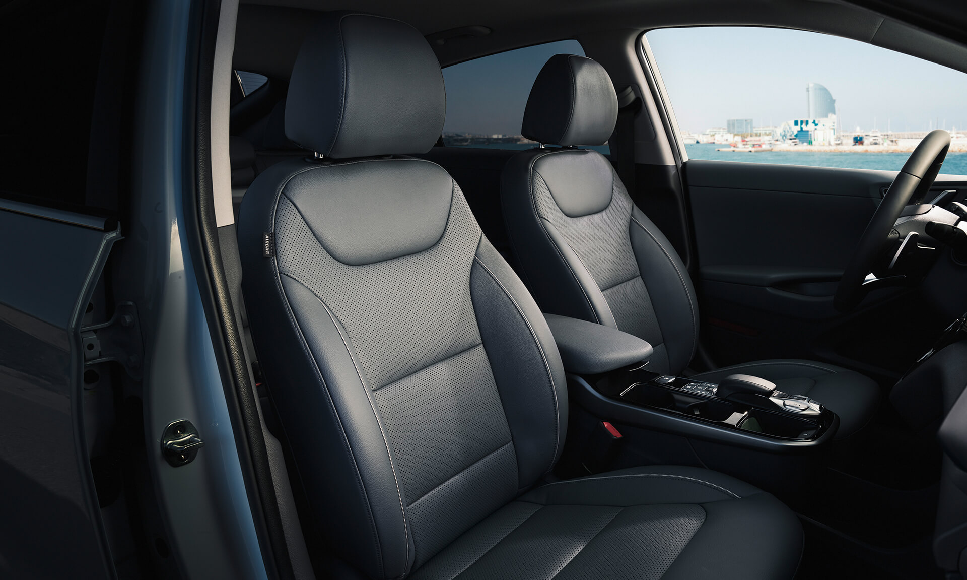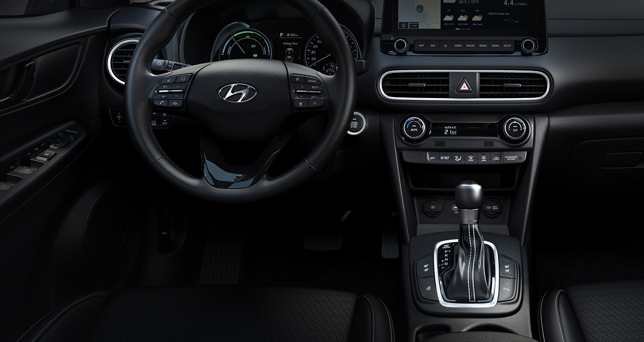 No interior do novo KAUAI Hybrid encontramos um nível excecional de conforto, com materiais de alta qualidade para um ambiente requintado. Como equipamento de série, estão incluídos acabamentos em branco. Os destaques brancos elegantes nas molduras das grelhas de ventilação e a moldura da alavanca das mudanças contrastam com os pormenores em preto brilhante dos puxadores interiores das portas, nos raios do volante e nas grelhas de ventilação. Os bancos também apresentam costuras brancas contrastantes para uma elegância ainda maior.
